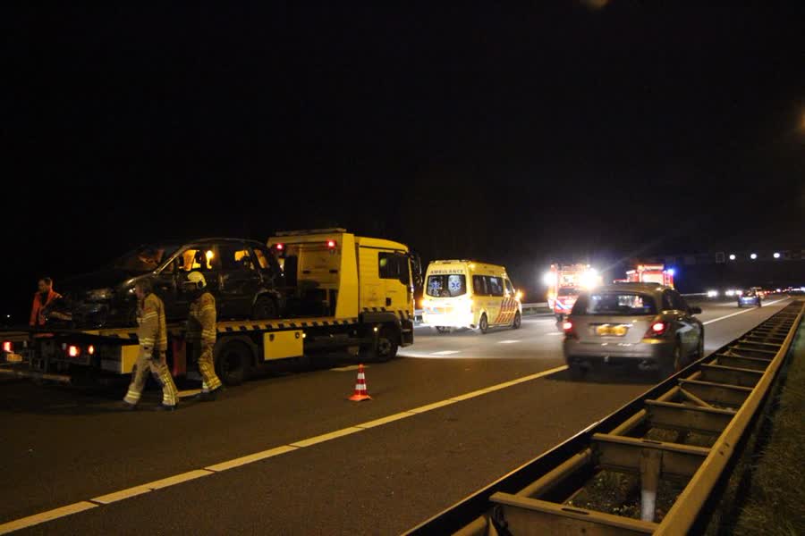 De A12 is korte tijd afgesloten geweest. Het verkeer werd via de vluchtstrook geleid.