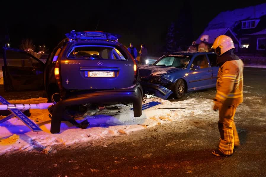 De man en de vrouw zijn na het ongeluk voor controle overgebracht naar het ziekenhuis. De bestuurder van de andere auto kwam met de schrik vrij.