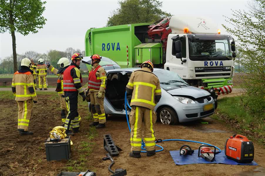 Het ongeval gebeurde omstreeks 08.30 uur op de Kriegerdijk. De vrachtwagen wilde de weg oversteken vanaf de Kroondijk, maar zag daarbij de personenauto over het hoofd. De inzittenden raakten na het ongeval bekneld en zijn door de brandweer uit hun voertuig geknipt.