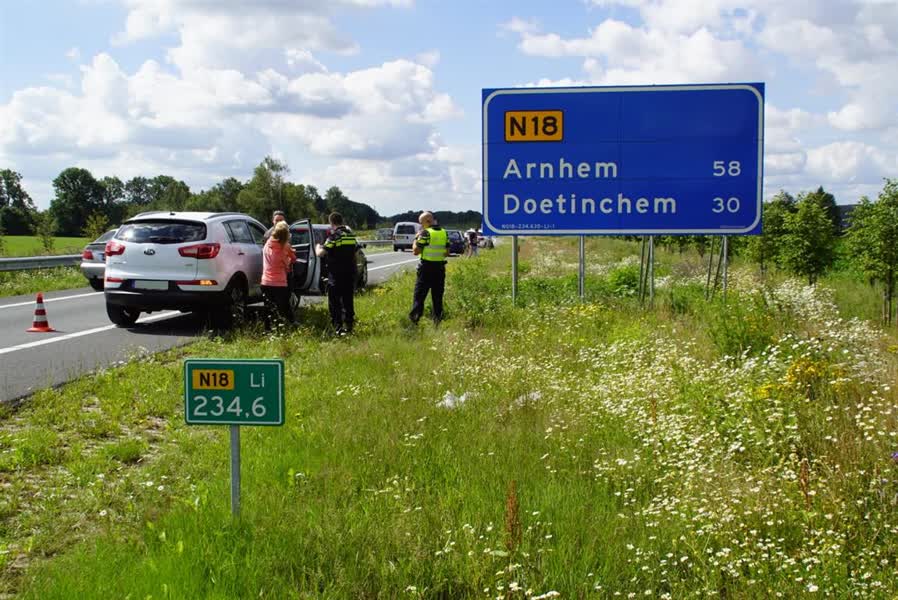 Het incident vond rond 11.15 uur plaats op de N18 nabij een tankstation. Twee voertuigen kwamen daar met elkaar in botsing. De politie spreekt van een kleine kop-staartbotsing.