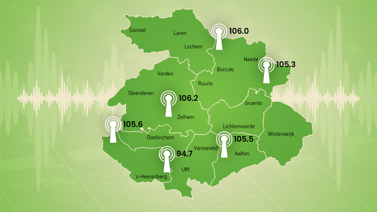 Radiozender REGIO8: DAB+ Kanaal Achterhoek 5A + 94.7 FM, 105.3 FM, 105.5 FM, 105.6 FM en 106.2 FM