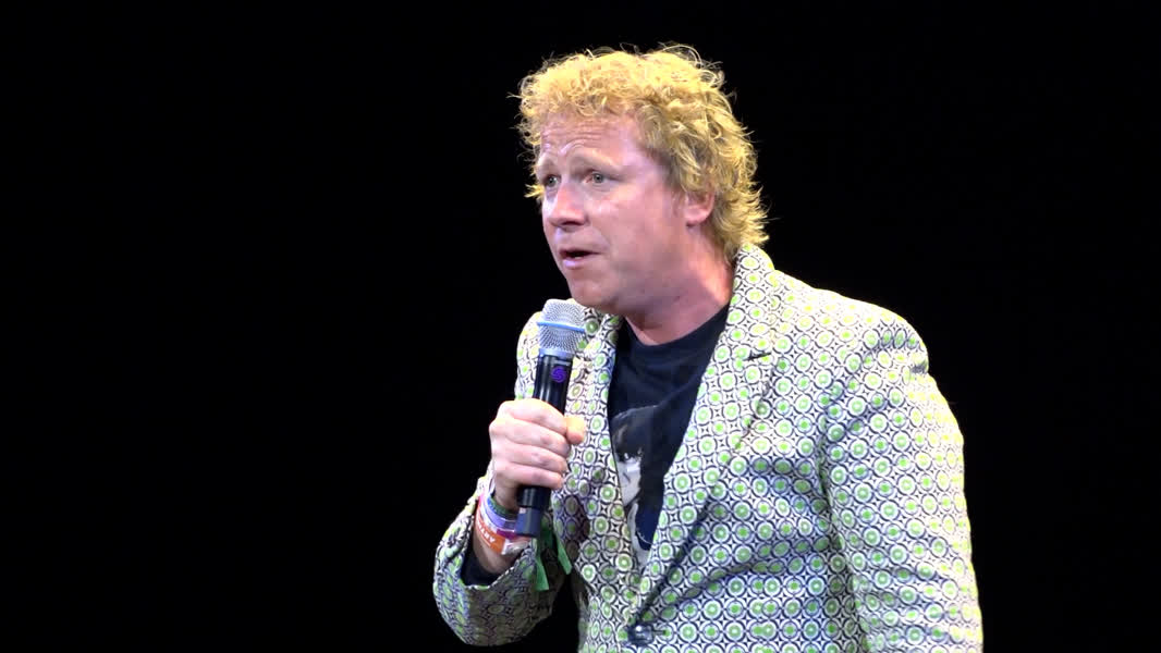 In zijn show komt Kemperink nog even spontaan terug op de nieuwe eigenaar van het festival: 'De nieuwe eigenaar wilde de leus van vorig jaar aanhouden maar dan omdraaien: 'Make war, not schik'.'