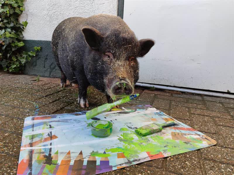 Robin de Haan uit Gaanderen heeft haar varken Mojo opgeleid tot een ware artiest. Het dier kan naast schilderen onder meer basketballen en wordt zelfs gevraagd voor televisieoptredens en commercials, tot vreugde van haar trotse eigenaresse.