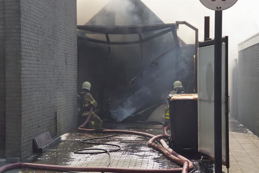 De rook die vrij kwam zette de hele buurt blauw, waardoor de brandweer iedereen op afstand moest houden. Mogelijk is de brand veroorzaakt door laswerkzaamheden, maar dat wil de politie niet bevestigen.