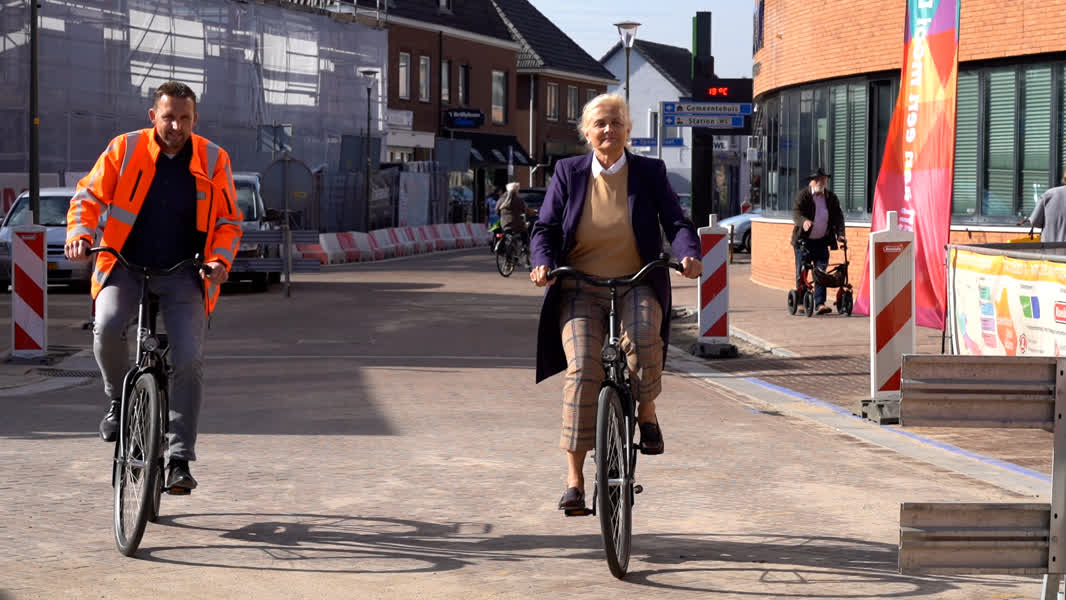 “Dit is een hele belangrijke weg voor het centrum”, vertelt de wethouder over de Wilhelminastraat in het dorpshart. “We hebben ook de afgelopen maanden wel gemerkt van de ondernemers en de omwonenden hoe belangrijk het is om dit zo snel mogelijk open te stellen.” Wethouder Derksen hoopt met het fietsen het goede voorbeeld te geven, want de weg is ingericht om automobilisten te weren. Inwoners zijn vooral blij dat de straat weer open is. “Dit is onze weg het dorp uit”, vertelt inwoner Henneke Grondman. “Ik woon om de hoek en we moesten al die tijd omrijden en met de fiets. Je doet hier de boodschappen en met de fiets was dat iedere keer gedoe. Het is heerlijk dat het weer open is.”
