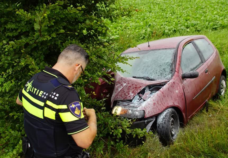 Een auto is zaterdagmiddag rond 14.15 uur is op de Varsseveldseweg (N330) bij Halle op de kop in de ...