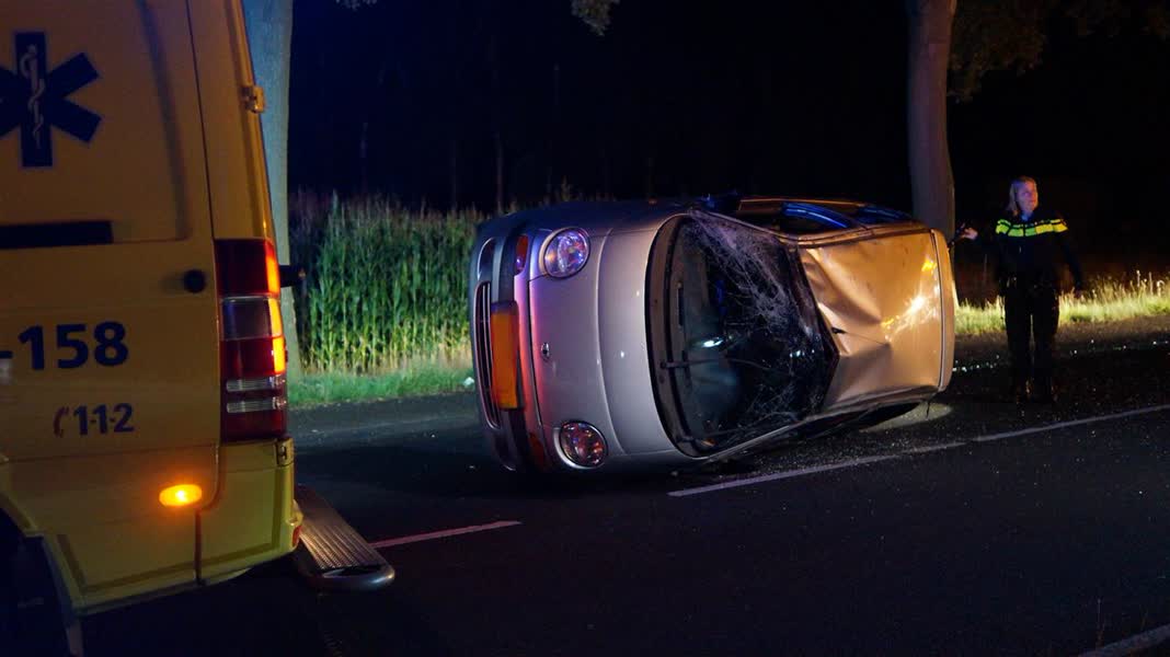 Daarna verloor hij de macht over het stuur en kwam de wagen op zijn zijkant op de weg terecht. In de auto zaten vier jongens uit Neede, zij raakten allen gewond.