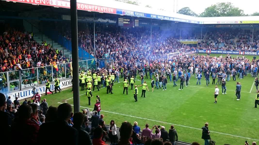 De nu opgepakte supporters hebben zondagmiddag allemaal het veld betreden na de wedstrijd. Ze belaagden spelers van de club uit Deventer en stewards die probeerden de spelers in veiligheid te brengen. Ook buiten het stadion hebben fans zich misdragen, er werd met stenen naar de politie en supportersbussen van Go Ahead Eagles gegooid.
