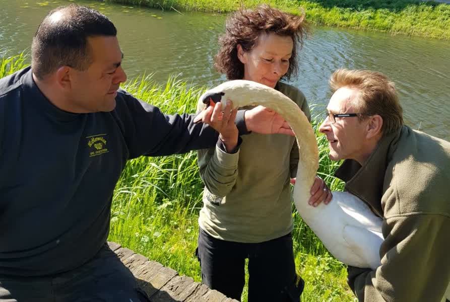 Na meerdere dagen is het gelukt om een vishaak uit de snavel van een zwaan te halen in Ulft. Wat de brandweer maandag niet lukte, is woensdag met een reddingsactie met meerdere partijen wel gelukt.