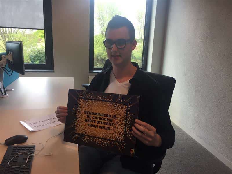 "Ik vind het wel een eer dat veel mensen aan mij hebben gedacht om mij te nomineren, dat doet me wel goed", vertelt een verblufte Twan Kruis over zijn nominatie. "Door mijn visuele beperking moet ik voor sommige dingen iets harder werken dan anderen en ik denk dat mensen dat aan mij waarderen." Twan heeft slechts vijf procent zicht, maar dat was volgens docent Dolf van Workum niet de enige reden voor nominatie. "Zelfs als je dat weghaalt, dan vind ik Twan alsnog echt een talent", zo laat Van Workum weten. "Ik hoop dat hij wint, ik bedoel ik wed toch graag op het winnende paard."