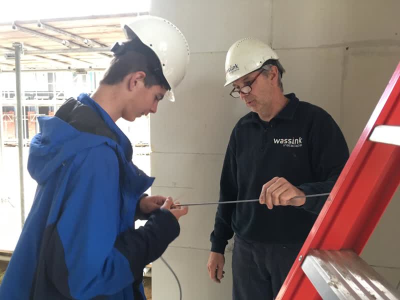 “Vmbo-leerlingen die bij ons hebben gekozen voor het vak van automonteur liepen al een dagdeel stage”, vertelt docent Tonny te Winkel van het Metzo College. “Daarop voortbordurend ben ik naar Installatiewerk Achterhoek-Rivierland gegaan en hebben we een samenwerking opgezet.” Een aantal installatiebedrijven uit de regio doet mee en haalt de leerlingen op bij school. “Hoe stoer is dat?”, zegt Te Winkel. “We willen het gevoel bij de leerlingen los maken dat je er als installateur of elektromonteur toe doet.” Remco Thuis is één van de leerlingen die een middag op pad gaat met een installatiebedrijf. “Ik vind het leuk en interessant om mee te kijken hoe het op de bouw is”, zegt Thuis. In de praktijk leert hij andere dingen dan in een klaslokaal: “Je leert omgaan met collega’s en dat je goed moet nadenken voordat je aan iets begint”, zegt Thuis.