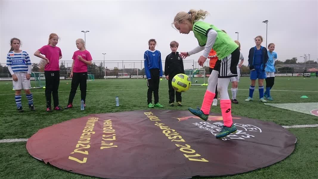 "Het is al de snelst groeiende sport in Nederland", aldus Anouk Dijkhoff van de KNVB over vrouwenvoetbal. "Maar we willen het ook heel graag de grootste sport maken." Verspreid over het hoofdveld van Viod was er vrijdag ruimte voor partijtjes, trainingsvormen en een ware hooghoudwedstrijd. "De meiden moeten dan in negentig seconden zo vaak mogelijk de bal hooghouden", vertelt Carla Stokman van Sportservice Doetinchem. "Nu zijn de voorrondes, de halve finale is op De Vijverberg en de finale is tijdens EK-loting op 8 november."