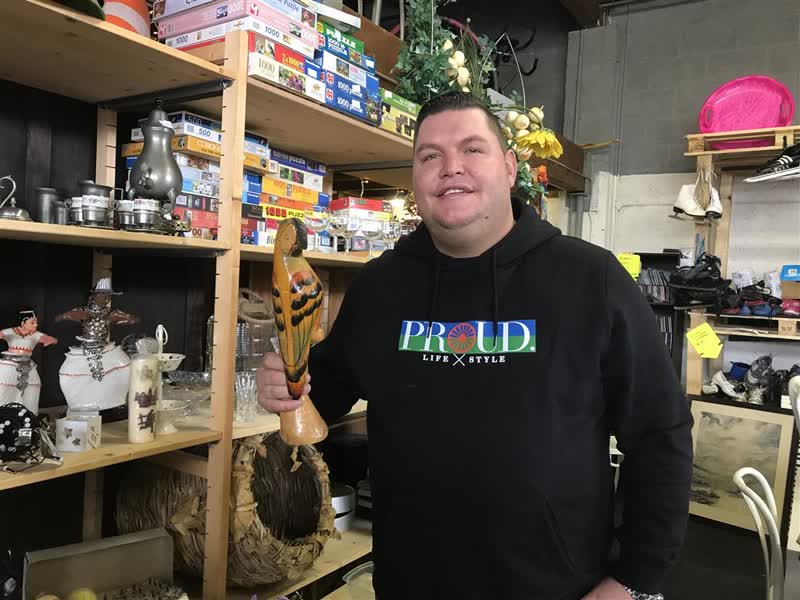 “Mijn moeder heeft altijd een kringloop gehad en ik zit doordeweeks toch thuis”, zo soms Tinus Hoekstra de redenen op om de kringloopwinkel aan de Vlijtstraat te starten. “En ik moet zeggen, tot nu toe loopt het lekker door.” De winkel is gevuld met allerlei artikelen, van banken en puzzels tot een legerkostuum en houten beren. De volkszanger zelf heeft een kantoor in de hoek van de zaak, waar naast een vitrine vol cd’s een PlayStation staat die veelvuldig wordt gebruikt. “Het is gewoon leuk dat mensen binnenkomen, dat je een babbeltje kan maken”, vindt Hoekstra.