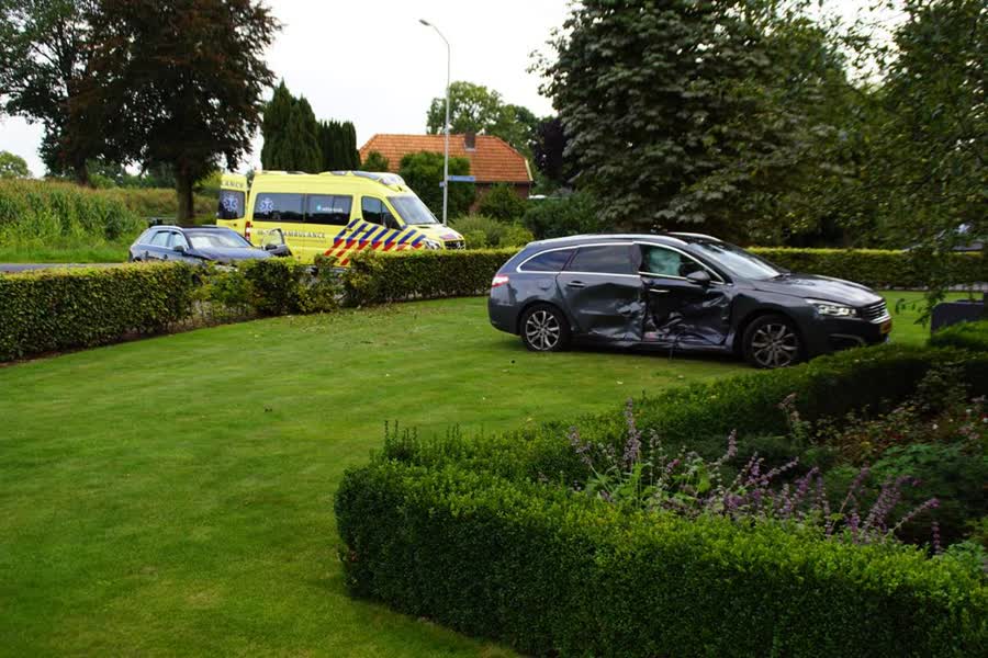 Daarbij is de bestuurder die geen voorrang verleende door een heg gereden en in een tuin tot stilstand gekomen. Hij moest met onbekend letsel worden afgevoerd naar het ziekenhuis. Beide auto's zijn afgesleept.