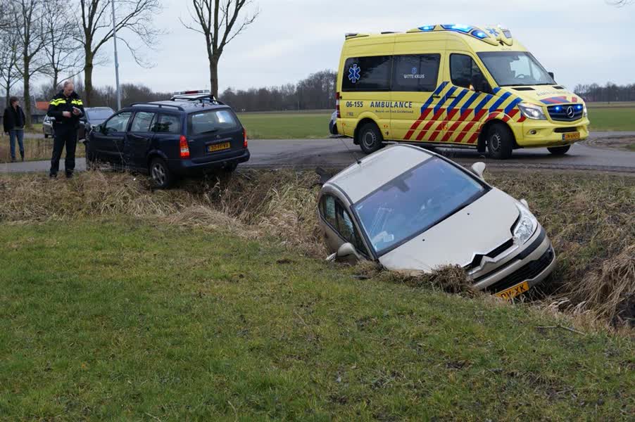 Het ongeval gebeurde omstreeks 16.30 uur op de Zilverbekendijk. Een automobiliste wilde de weg oversteken, maar zag daarbij een van rechts komende auto over het hoofd. De automobiliste kwam na de botsing in een droge sloot tot stilstand.