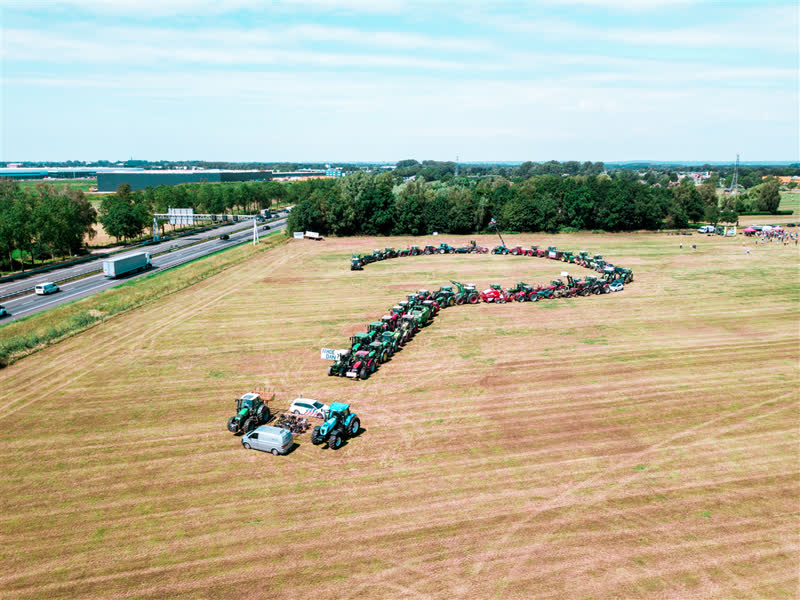 Het vraagteken bestond grotendeels uit trekkers, maar ook een politieauto, fietsen en auto's van burgers maakten onderdeel uit van het teken. “Als je de bevolking van Didam vraagt denk ik dat tachtig tot 85% achter de boeren staat”, zegt Theo Booltink, die twee kilometer fietste om zich bij de actie te voegen. “We zitten hier allemaal in een buitengebied, de mensen zien ook wat er gebeurt.” Die steun van zijn omgeving voelt Holleman: “Wij voelen ons absoluut gesteund door de burgers, daarom wilden we ze ook niet plagen met onze actie.”