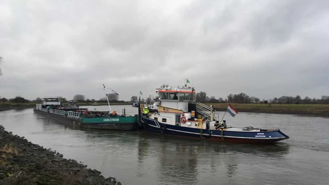 Het 80 meter lange schip met de naam 'De IJsselstroom' heeft ruim 24 uur vastgelegen. Dat leverde ook vertraging op voor andere schepen op de rivier. De schipper van De IJsselstroom wil geen commentaar geven over de situatie. Het vrachtschip zou zijn verkocht, zeggen mensen die aan de wal staan te kijken. Na de reis van deze week zou De IJsselstroom nog één keer het water op gaan. Het enkelwandige vrachtschip zou daarna uit de vaart worden genomen. Het bedrijf dat de vracht van het schip heeft aangeleverd vertelt dat het schip dieselolie verscheept. Hoeveel schade het bedrijf heeft opgelopen, is nog niet vast te stellen. Het blijkt echter dat de schade voor andere schippers waarschijnlijk veel groter is dan voor het bedrijf zelf.