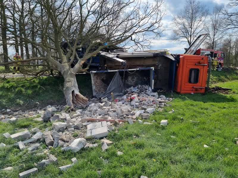 De vrachtwagen was geladen met puin, dat is in de sloot en de naastgelegen wei terecht gekomen. De brandweer is ter plaatse gekomen om de weg vrij te maken. Het overige verkeer ondervond geruime tijd hinder van het ongeval.