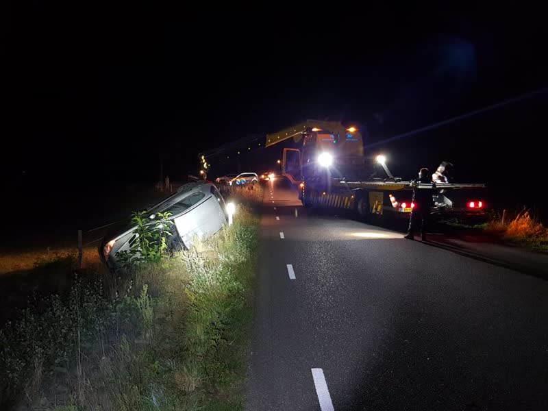 De twee inzittenden van de auto zijn na het ongeval gecontroleerd door ambulancepersoneel, maar niemand hoefde mee naar het ziekenhuis. De auto moest worden geborgen. Tijdens de opruimwerkzaamheden is de weg een tijdlang afgesloten geweest.