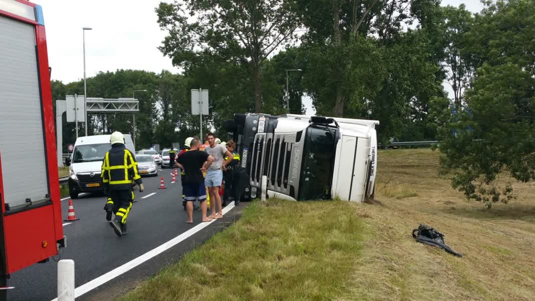 Vrachtwagen vol vlees gekanteld op A12/A18
