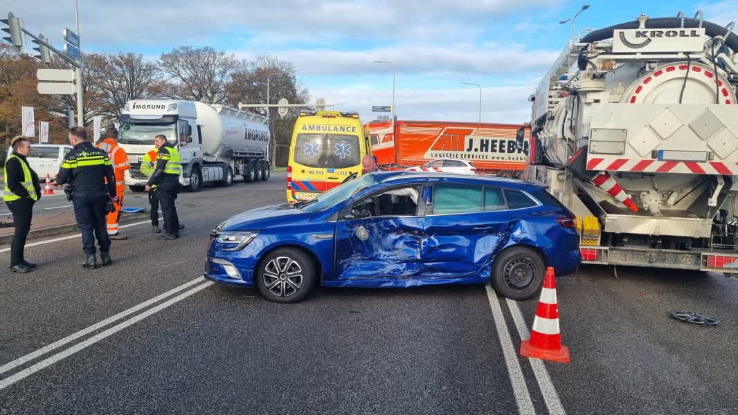De automobiliste is na het ongeval opgevangen in de ambulance en met onbekende verwondingen meegenomen naar het ziekenhuis. De kruising is voorlopig afgesloten voor het overige verkeer, wat zorgt voor de nodige overlast voor overige weggebruikers.