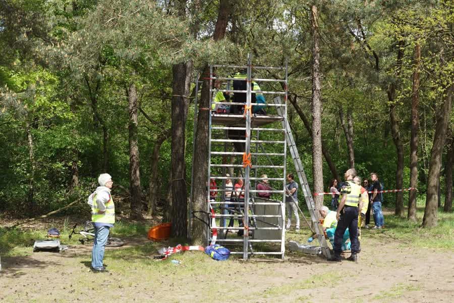 Na eerste verzorging op de stellage, werd de vrouw naar beneden gehaald. Ze is daarna met de ambulance naar het ziekenhuis gebracht.