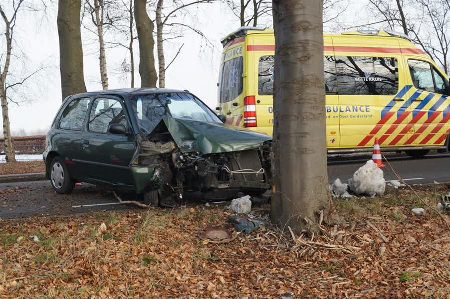Het ongeval gebeurde omstreeks 13.40 uur op de Zelhemseweg. De bestuurster raakte door nog onbekende oorzaak de macht over het stuur kwijt en kwam via een boom tot stilstand.