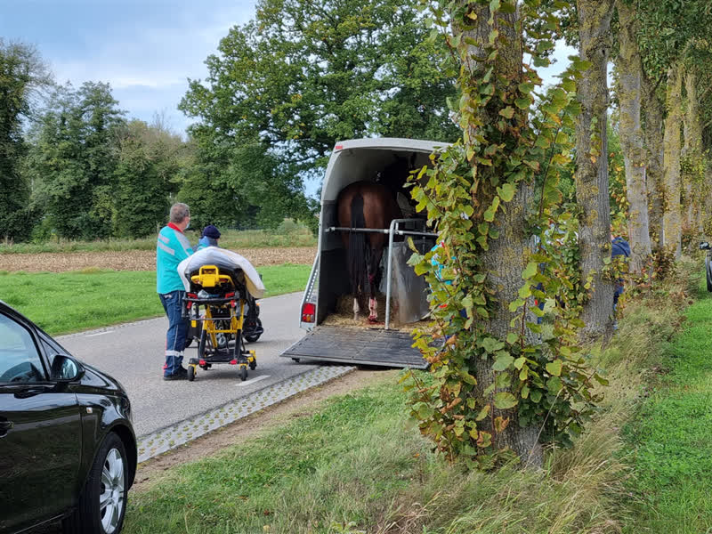 De vrouw heeft een flinke hoofdwond opgelopen en is door de ambulance meegenomen naar het ziekenhuis. Het paard heeft een wond aan zijn been overgehouden aan het incident en is naar de veearts gebracht.