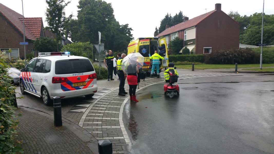 Het ongeval gebeurde maandagmiddag rond 14:30 uur op de kruising van de Europaweg met de Koopmanstraat in Aalten. Een vrouw in een scootmobiel is door vooralsnog onbekende oorzaak gekanteld. Mogelijk schrok ze door een auto die vanaf links kwam. De vrouw is met onbekend letsel afgevoerd naar het ziekenhuis in Winterswijk.