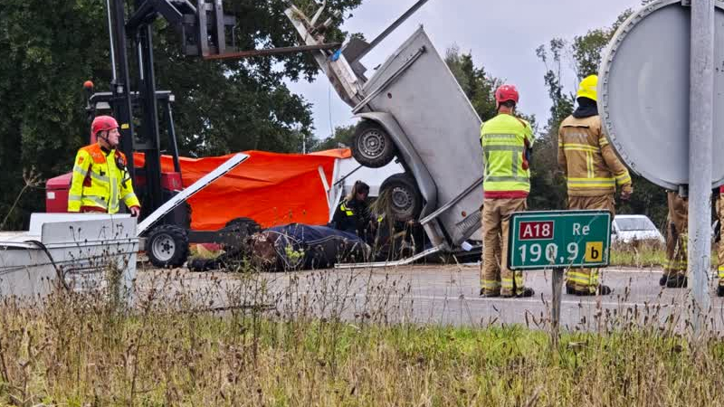 Een busje dat woensdagmiddag over de A18 reed in de richting van Doetinchem, is achterop een paarden...