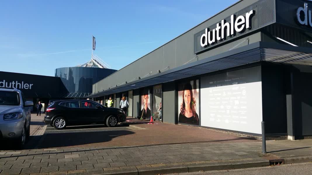 Het ongeval vond maandagmiddag plaats bij kledingwinkel Duthler in het centrum van het dorp. De bestuurster wilde de automatische auto in de achteruit zetten, maar reed in plaats daarvan vooruit. Hierdoor kwam de bestuurster in de etalage terecht.