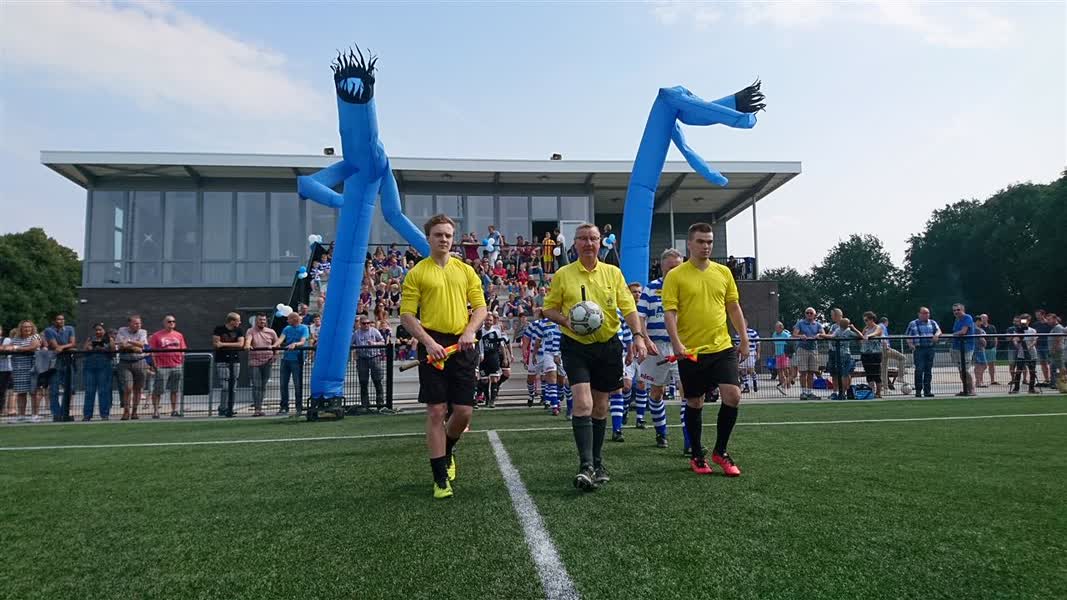 "Door de samenwerking met de school hebben we nu iets kunnen realiseren wat we als relatief kleine voetbalclub nooit hadden kunnen realiseren", vertelt voorzitter Luuk van Aalst van de Gaanderense vierdeklasser met 650 leden. "We hopen door die samenwerking het dorp weer een boost te geven en voor de toekomst leefbaar te houden." Onderdeel van de reeks aan festiviteiten dit weekend was een wedstrijd tegen Oud De Graafschap. "Het ziet er echt allemaal heel mooi uit", vindt voormalig rechtsback René Bot. "Alleen de tribune is wat steil, maar voor de rest prima in orde."