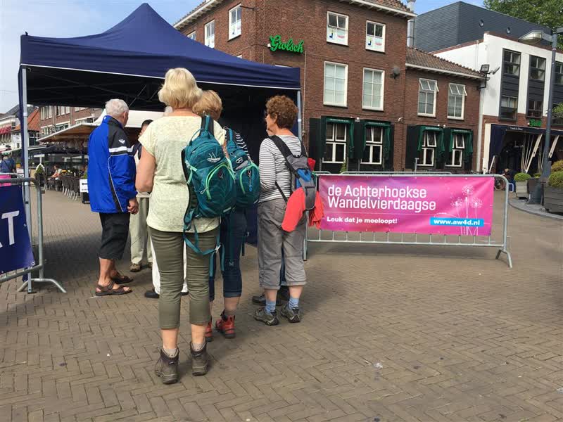 De meeste wandelaars zijn woensdagochtend bij de start ook goed voorbereid. ‘’Lekker een korte broek en rustig aan doen’’, vertelt een deelneemster. ‘’Af en toe moet je goed drinken en de definitie van goed drinken is niet dat je meteen een flesje met koud water moet wegwerken, maar af en toe twee of drie slokken’’, vult een ervaren wandelaar aan.