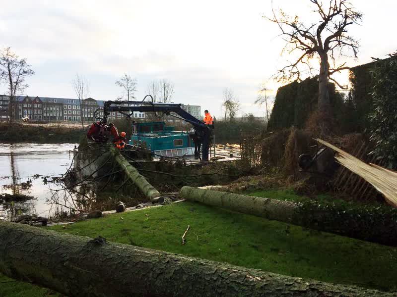 Het Waterschap laat weten de resten van de storm zo snel mogelijk op te ruimen. "Onze onderhoudsmedewerkers doen hun uiterste best om bomen, takken, drijfhout en aangewaaid afval op onze terreinen op te ruimen."