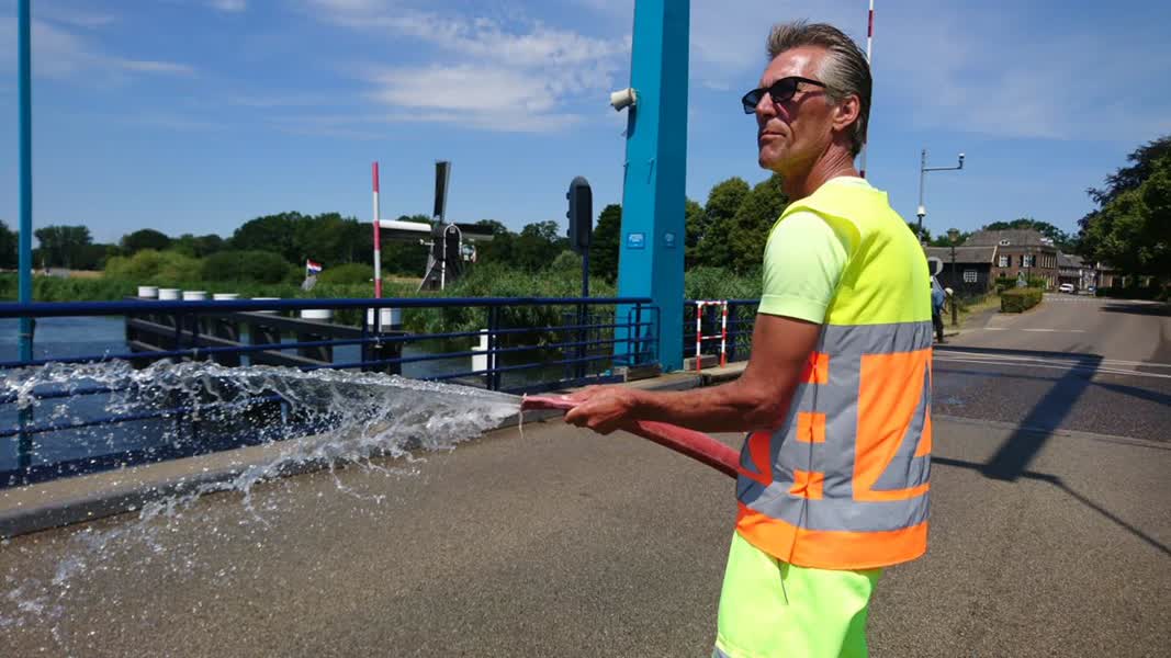 Het kwik stijgt de komende dagen tot boven de dertig graden waardoor delen van de bruggen uit kunnen zetten. Dat is reden voor het waterschap om oppervlaktewater op het brugdek te laten lopen. “Zo wordt de temperatuur van het ijzer niet zo hoog met als resultaat dat de uitzetting van het ijzer dan minder is”, legt het Waterschap Rijn en IJssel uit. “Hiermee voorkomen we dat het beweegbare gedeelte van de brug vast komt te zitten tussen het betonnen wegdek.”