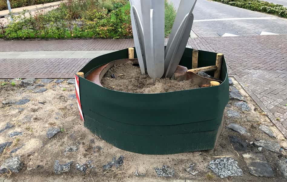 De bloembak, die toen pas net was geplaatst, raakte in de nacht van 10 op 11 maart beschadigd bij een ongeval. De bestuurder van een bestelbusje botste bij de fietsoversteekplaats op het object en eindigde op de zijkant. De man werd na het ongeval overgebracht naar het ziekenhuis.