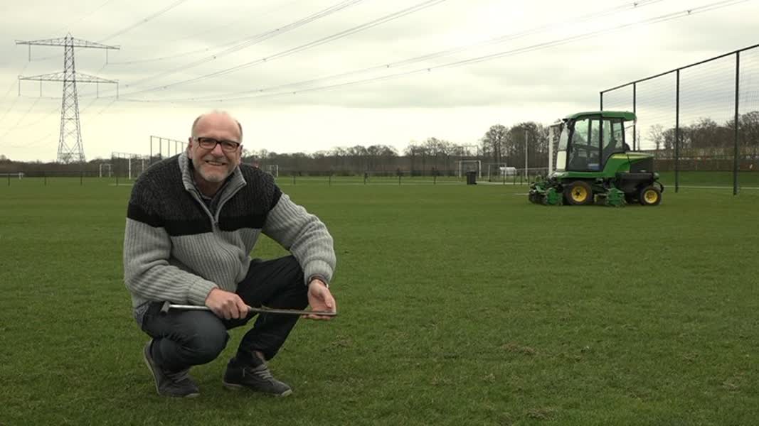 Omroep Gelderland. “En daar mag je dan naast staan. Dat is toch leuk.” Voor het onderhoud aan de velden in de gemeente Zutphen is de 58-jarige Verhagen dagelijks te vinden bij Warnsveldse Boys, Be Quick Z, AZC Zutphen, FC Zutphen en Z.V.V. De Hoven. Hij inspecteert de velden, op zijn eigen manier. “Ik begin altijd met kijken”, zo legt de grasmeester uit. “Wat zie ik? Hoe is de kleur en waar zitten de schades?” Vervolgens gebruikt Verhagen een guts om de grond goed te bekijken. “Dan voel en ruik ik. Als het niet goed zit in de grond, dan stinkt het echt. Soms proef ik ook. Dan voel je nog meer de fijne deeltjes van de leem. Dat voel je dan echt!”