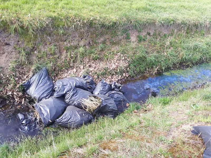 In het buitengebied van Beltrum is door onbekenden hennepafval gedumpt. In een sloot lagen meerdere vuilniszakken.