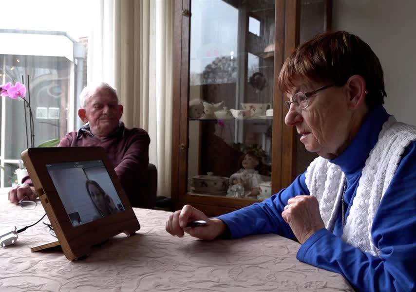 Waar Pia en haar man erg gelukkig mee zijn is de Compaan. De Compaan is een tablet voor ouderen die goed is voor hun sociale contacten. Een cliënt kan er ook mee videobellen, als er vragen zijn over de verzorging. "Je kunt wondjes op afstand bekijken en adviseren wat het beleid moet zijn", legt Navis uit. "Dat is wel fijn", zegt Pia. "Dat hebben we al eens gebruikt. Het is ook wel eens per ongeluk aan gegaan. Ze zei wat is er? Ik zei: er is niks. Het ging per ongeluk. Nou, toen was het ook goed, hè."