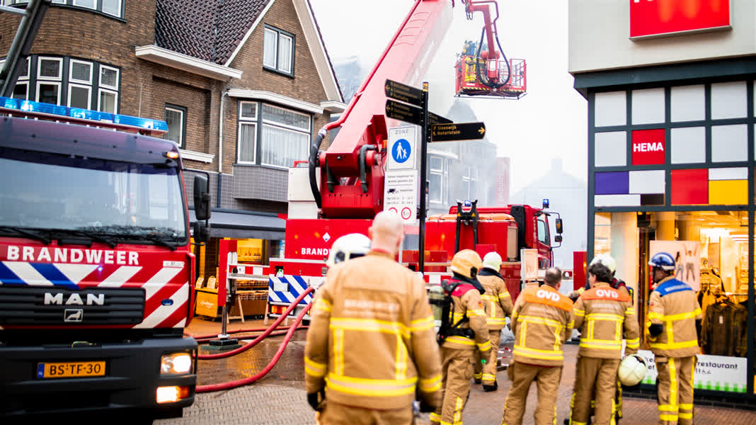 UPDATE 21.00 uur: de brandweer gaf om 20.15 uur het sein brandmeester. Omliggende panden hebben rook,roet- en waterschade opgelopen.
