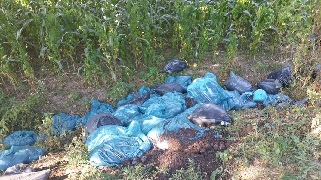 Op een foto is te zien dat gaat om ongeveer twintig zakken met afval. De vondst werd gedaan op de Zeddamseweg, ter hoogte van de splitsing met de Maria van Nassaulaan.