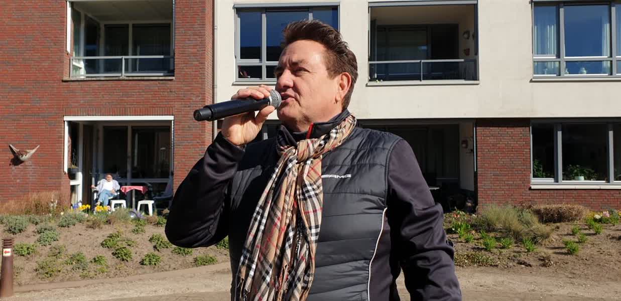 Zanger Peter Borkes stak woensdagmorgen de bewoners en medewerkers van verpleeghuis De Schuylenburgh in Silvolde een hart onder de riem. Met zijn vertolking van 'You'll never walk alone' wilde de entertainer de bewoners opvrolijken nu ze niet meer naar buiten mogen en ook geen bezoek meer mogen ontvangen.