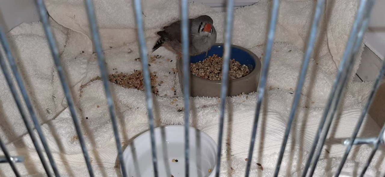 Een zebravinkje is maandag in Winterswijk met zijn kooi bij het vuilnis neergezet. Inmiddels is het vogeltje gevonden en naar de dierenambulance gebracht.