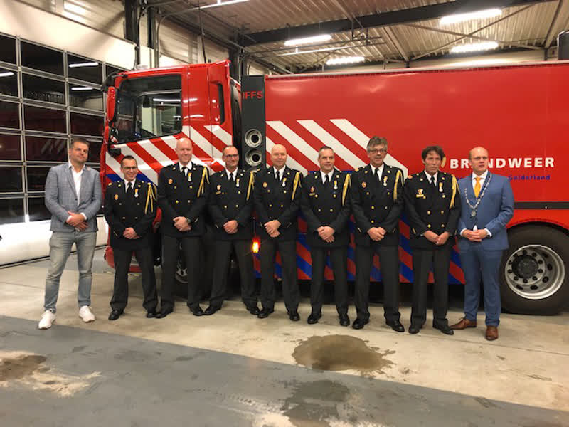 De brandweermannen kregen de onderscheiding opgespeld in de kazerne in bijzijn van hun partners en kinderen. Burgemeester Joris Bengevoord bedankte ook hen voor het feit dat hun man en vader dag en nacht paraat staat om uit te rukken.