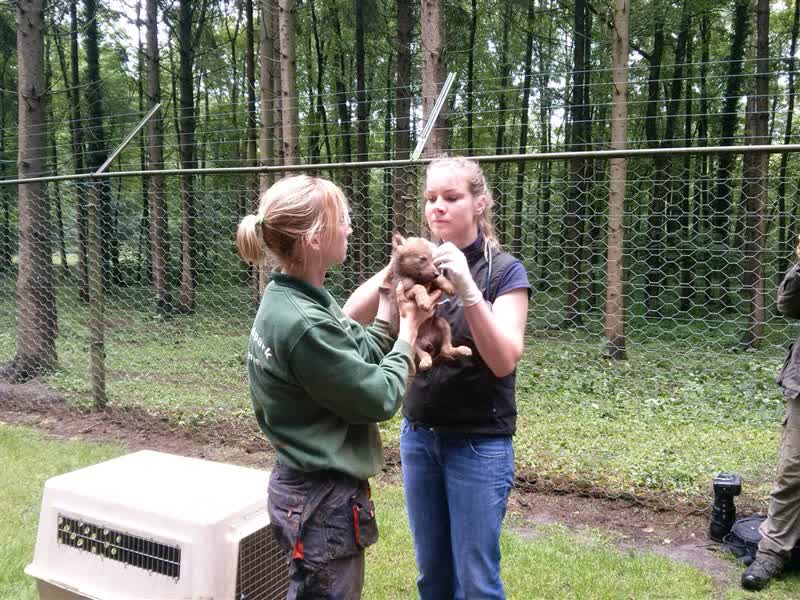 Het dierenpark wisselt regelmatig dieren uit met andere parken. "Vorig jaar zijn er vier naar andere parken gegaan. We hebben nog eentje van vorig jaar en die speelt echt voor grote zus. Die helpt met de opvoeding van de nieuwe wolfjes." De wolven worden vanwege de uitwisseling gechipt zodat ze goed onderscheiden kunnen worden. "Het gaat met een uniek nummer, dus ze weten altijd welk dier welk nummer heeft."
