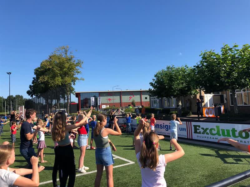"Ik vind het wel weer heel fijn om met een grote groep in dit warme weer buiten zijn", zegt de jonge Kjeld, die zelf ook meehelpt met het organiseren. Felicia, die deelnam aan alle spellen, vond het ook fijn om weer eens wat te kunnen doen. "In de coronaperiode konden wij natuurlijk ook niet veel doen, dus het is fijn dat dit voor ons mogelijk is." De ochtend werd opgestart met een uitgebreide warming-up, waarna er op het voetbalveld verschillende soorten sporten mogelijk waren. In verschillende groepjes gingen de kinderen bij elk spel bij langs.
