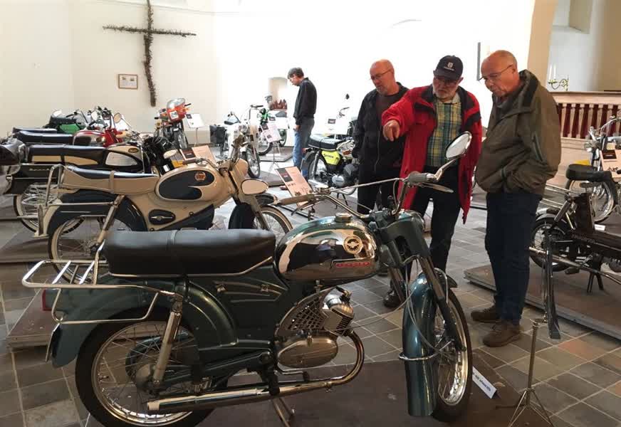 "Toevallig zijn beide merken ooit in het zelfde jaar begonnen", vertelt organisator Jan Bijvank. Ter gelegenheid van het honderdjarig jubileum stond de kerk vol met ontwerpen van de twee bekende brommermerken. "Als jonge jongen heb je zelf zo’n ding gehad", zegt bezoeker Harm Heezen over zijn fascinatie voor de gemotoriseerde tweewielers. Hoewel hij een aantal mooie brommers tegenkwam in de kerk, heeft hij duidelijk een favoriet merk. "Dat blijft toch de Zündapp", aldus de liefhebber. "Ik had zelf een blauwe 517, dat is eigenlijk nog steeds mijn droombromfiets."