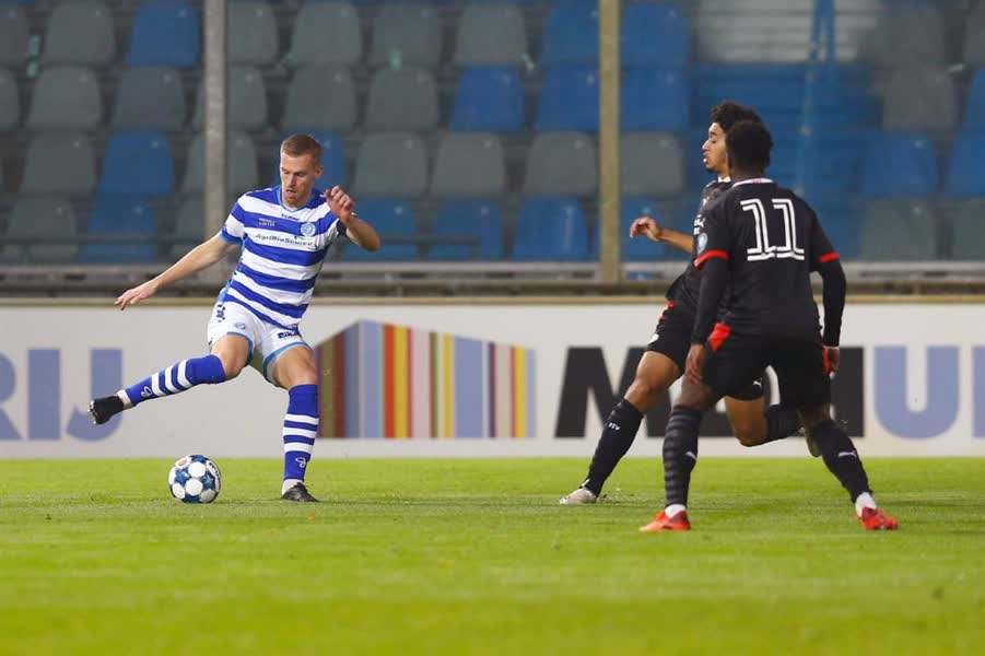 De Graafschap is er op de valreep in geslaagd om op een lege De Vijverberg te winnen van Jong PSV. Aanvoerder Ralf Seuntjens kroonde zich met twee doelpunten tot matchwinner, met de winnende (2-1) in de slotminuut.